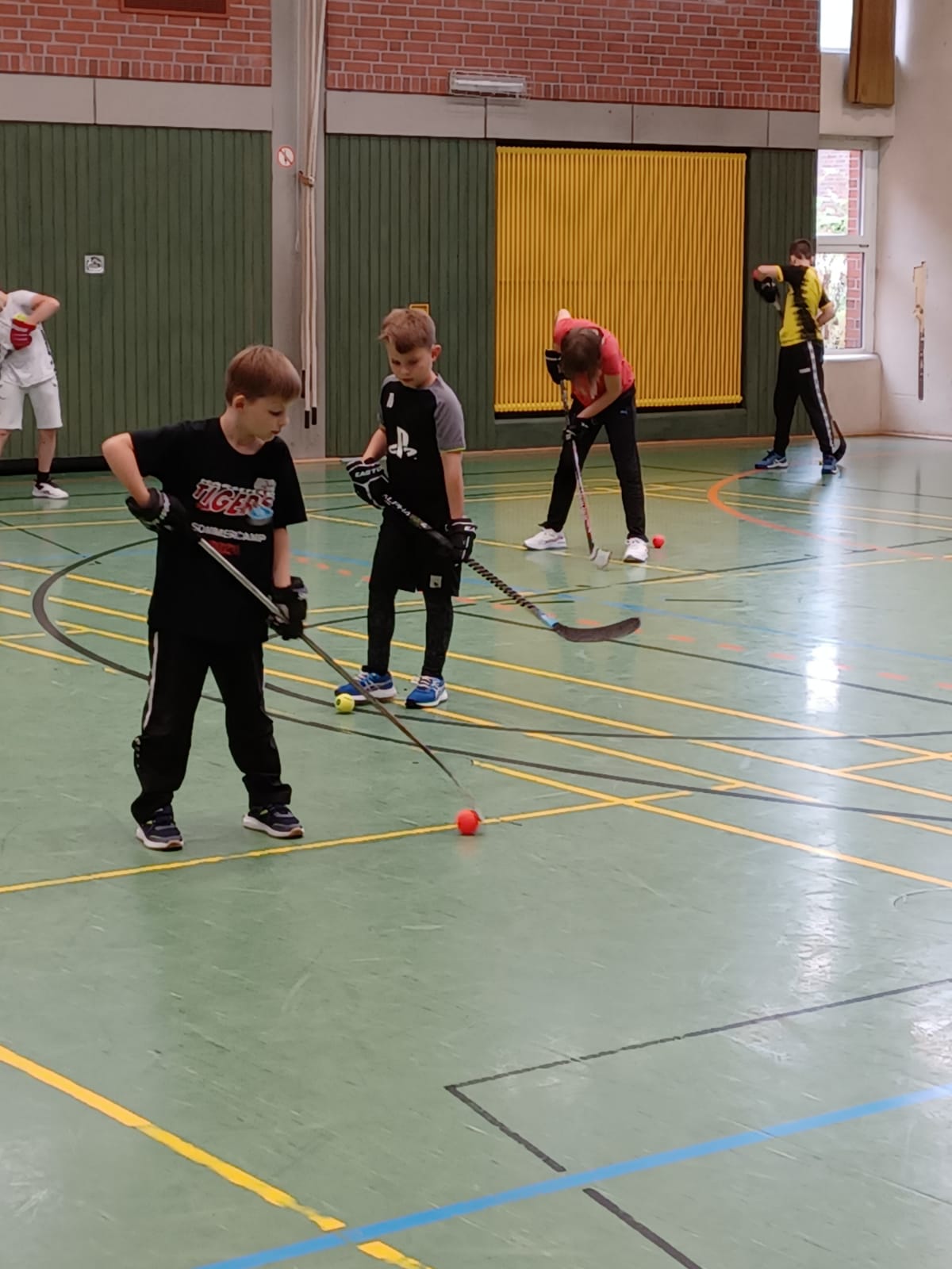Die Trainer Konstantin und Rene gestalteten das Training heute sehr abwechslungsreich. Vom Gerätezirkel über Stickhandling, Hallenhockey, Fußball, Linienticken (eine Idee von Benedikt) bis zum Seilspringen waren die drei Trainingsstunden unterhaltsam gefüllt. Zum Schluss waren alle erschöpft: Kinder, Trainer, Betreuer und Organisator.