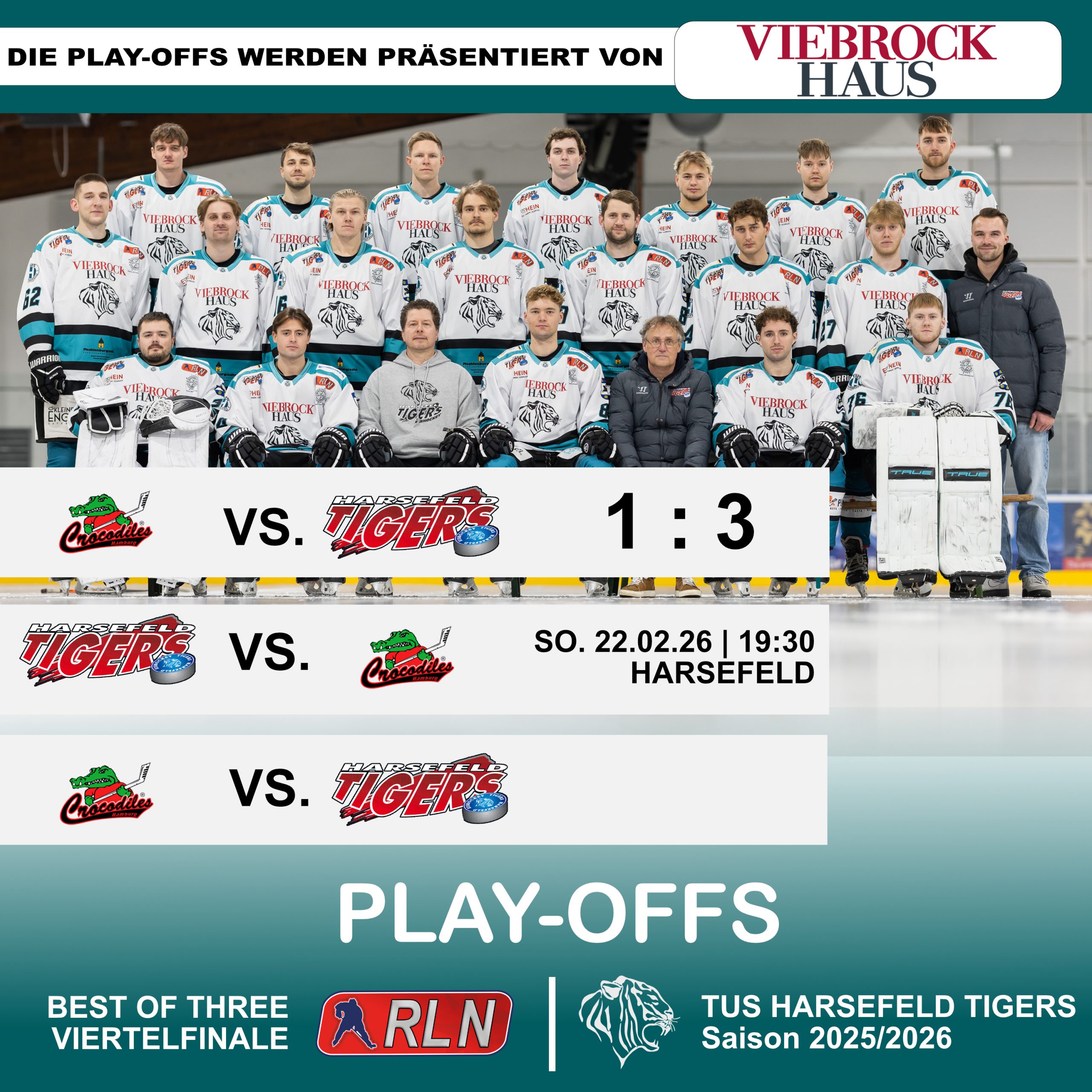 Spiel 2 findet am Sonntag, 22.02.2026 um 19:30 Uhr in der Harsefelder Eissporthalle statt.